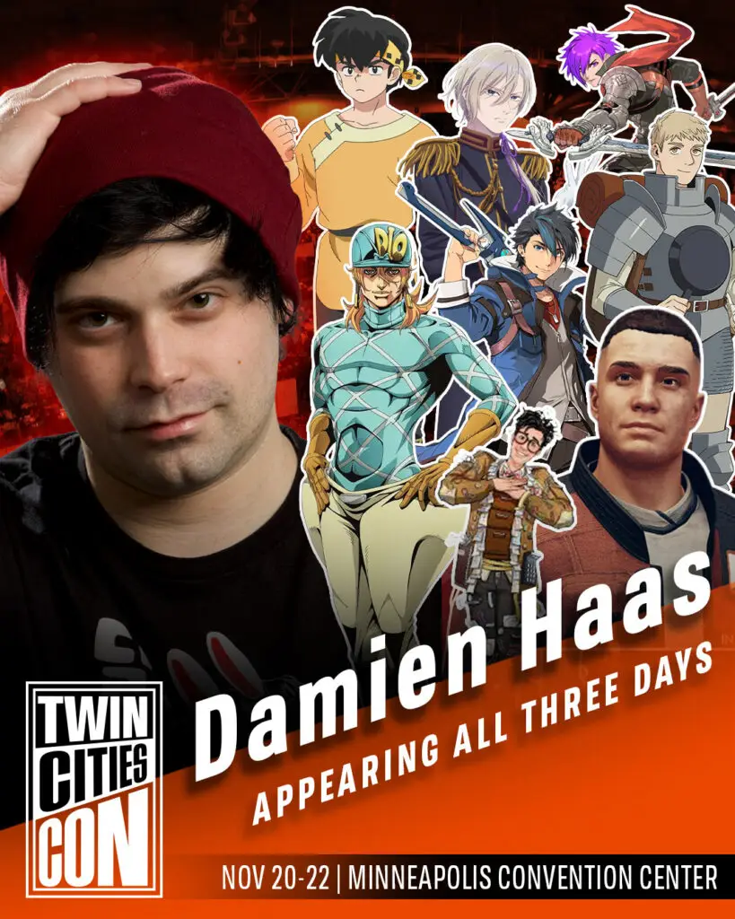 Damien Haas is a voice actor, sketch comedian, and lifelong fan of all things gaming and anime. He’s known for such voice roles as Laios in “Delicious in Dungeon,” Kiyoka Kudou in “My Happy Marriage,” Shez in “Fire Emblem: Three Hopes,” Heller in “Starfield,” Van Arkride in “Trails Through Daybreak 1&2,” Ryoga in “Ranma 1/2,” and many others. When he’s not just a disembodied voice, he can be found streaming on Twitch multiple times per week or being an internet clown on the YouTube channel Smosh.