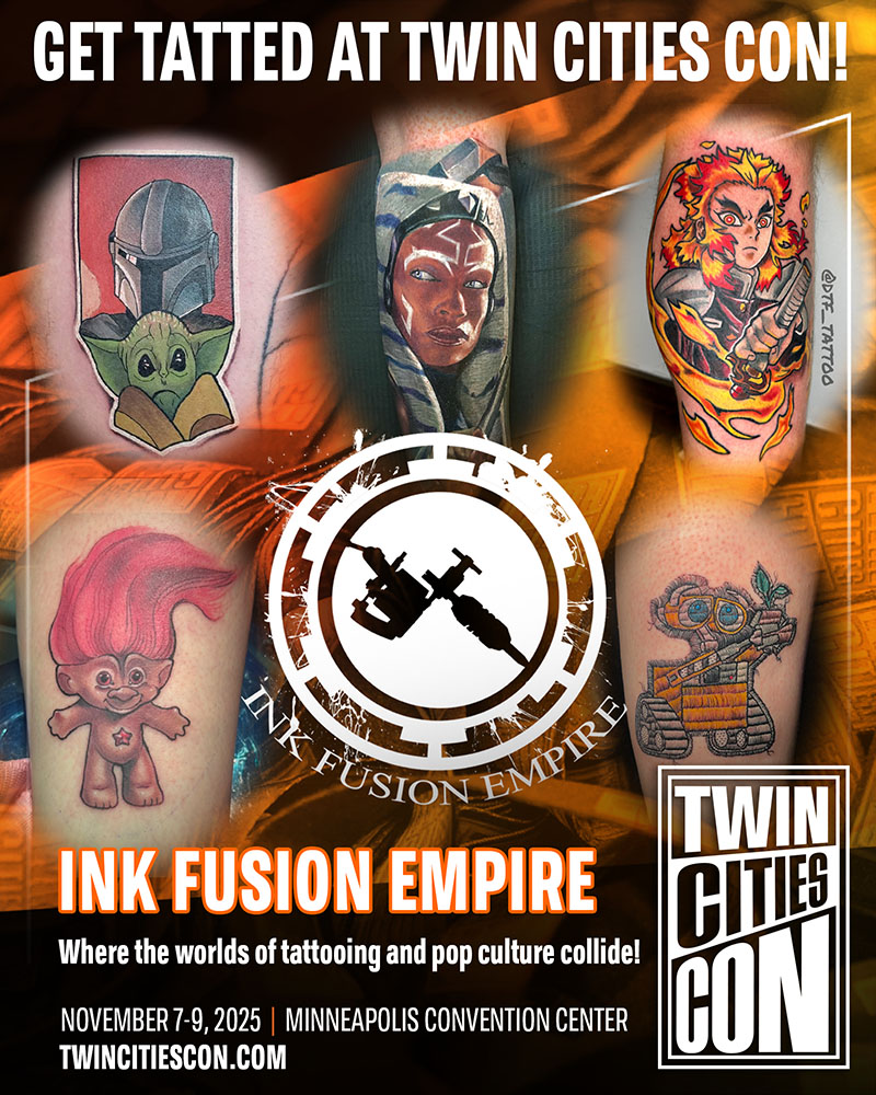 The Ink Fusion Tattoo Empire is the original and leading International Entertainment and Comic Con Tattoo program. Providing tattooing services for fans across the planet. Holding license agreements with Lucasfilms LTD, Star Trek / Paramount, Robert Englund, Lance Henriksen, Ricou Browning, and is the only sanctioned tattoo program by the late great Stan Lee. The Ink Fusion Empire proves itself, time after time, why it is “When the Worlds of Tattooing and Pop Culture Collide”.