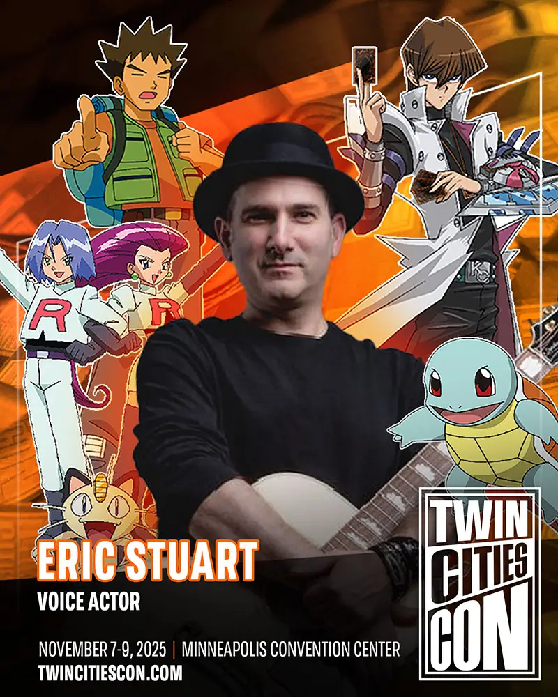 Eric Stuart is a multi-talented performer who serves as the lead singer, songwriter, and guitarist for the Eric Stuart Band. He may be better known for voice acting work, providing his voice for roles such as Brock and James on Pokemon and Seto Kaiba in Yu-Gi-Oh!